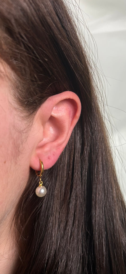 Sold outGold Pearl Hoops